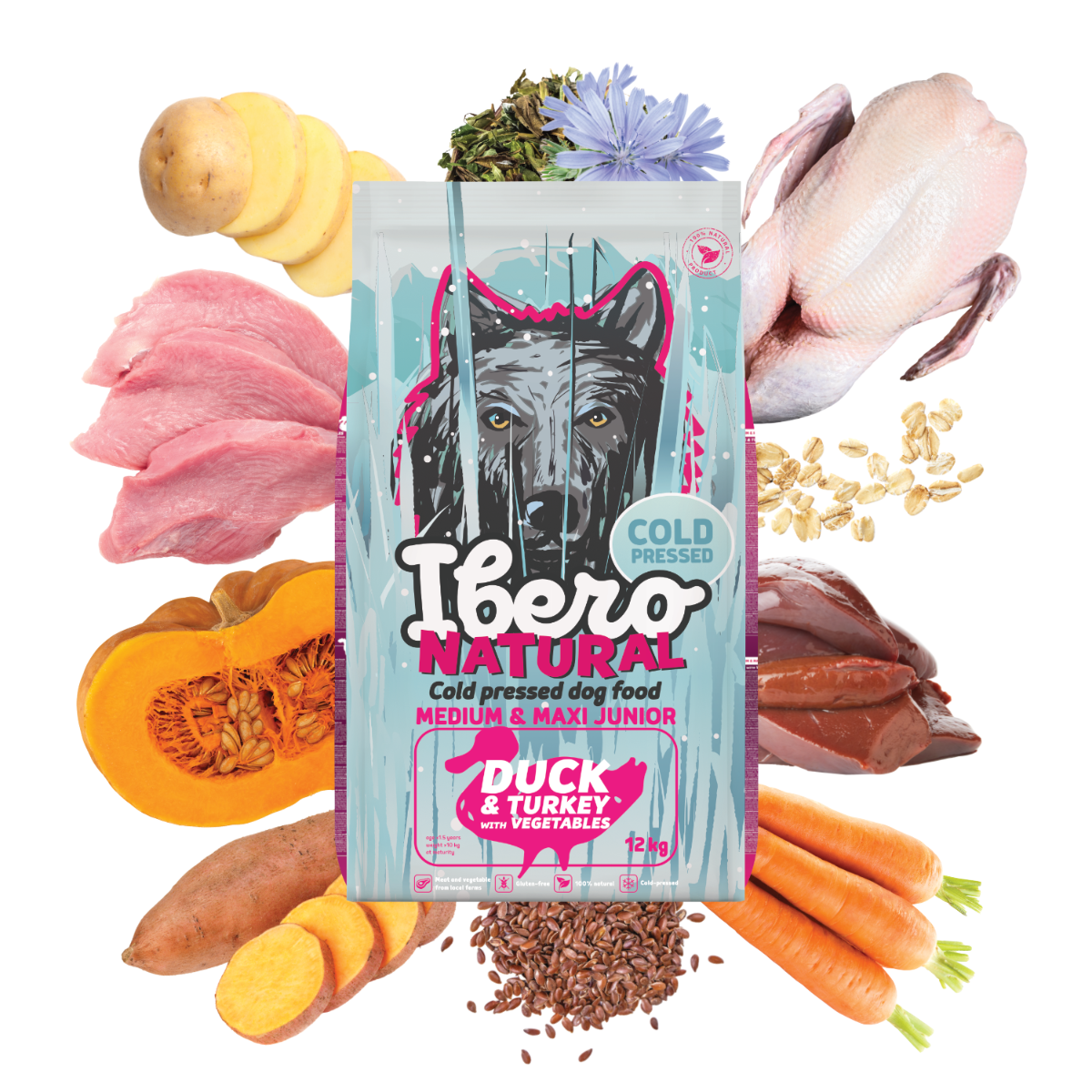 Kompletna karma super premium, tłoczona na zimno dla szczeniąt średnich i dużych ras do 1,5 roku życia . Receptura inspirowana jest naturalnymi zasadami żywienia BARF i opiera się na połączeniu wysokiej jakości mięsa indyczego i kaczego jako głównego źródła białka zwierzęcego. Bataty, ziemniaki i inne starannie dobrane naturalne składniki wspierają zdrowy wzrost, prawidłowy rozwój mięśni i kości oraz ogólną witalność szczenięcia. Dzięki delikatnej technologii tłoczenia na zimno, karma zachowuje wysoką wartość odżywczą i nie zwiększa objętości w żołądku, przyczyniając się do bezpiecznego i komfortowego trawienia w okresie intensywnego wzrostu.