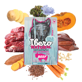 Karma Ibero Cold Pressed Adult Mini Beef to zbilansowana i funkcjonalna receptura opracowana w celu pełnego pokrycia potrzeb żywieniowych dorosłych psów małych ras. Bazą jest 34% odwodnionej wołowiny , która dostarcza wysokiej jakości i łatwostrawnych białek niezbędnych do utrzymania masy mięśniowej, witalności i ogólnej kondycji. Wątróbka jagnięca wzbogaca karmę w naturalne witaminy i minerały, które wspierają metabolizm, układ odpornościowy i atrakcyjność smaku. Bataty, ziemniaki, płatki owsiane, dynia i marchew stanowią naturalne źródła energii, błonnika i przeciwutleniaczy. Siemię lniane, ekstrakt z cykorii i suszone zioła harmonizują trawienie i wspierają zdrowie jelit. Beta-glukany wzmacniają naturalne mechanizmy obronne organizmu. Dzięki technologii tłoczenia na zimno karma zachowuje swój naturalny smak i wysoką wartość odżywczą. Granulki są gęste, lekkostrawne i nie zwiększają objętości w żołądku, co jest idealne do codziennego karmienia mniejszych psów. Ibero Cold Pressed Adult Mini Beef to w 100% naturalna karma bez sztucznych konserwantów, barwników i GMO. Jest to niezawodny wybór zapewniający długoterminowe, wysokiej jakości i zbilansowane odżywianie dorosłych psów małych ras.