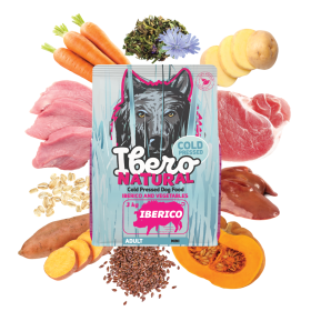 Ibero Cold Pressed Adult Mini Iberian Pork to zbilansowana i funkcjonalna receptura opracowana w celu pełnego pokrycia potrzeb żywieniowych dorosłych psów małych ras. Podstawą jest połączenie 20% suszonej wieprzowiny iberyjskiej , która dostarcza wysokiej jakości i łatwostrawnych białek niezbędnych do utrzymania masy mięśniowej, witalności i ogólnej kondycji. Wątróbka wieprzowa wzbogaca karmę w naturalne witaminy i minerały, które wspierają metabolizm, układ odpornościowy i atrakcyjność smaku. Bataty, ziemniaki, płatki owsiane, dynia i marchew stanowią naturalne źródła energii, błonnika i przeciwutleniaczy. Siemię lniane, ekstrakt z cykorii i suszone zioła harmonizują trawienie i wspierają zdrowie jelit. Beta-glukany wzmacniają naturalne mechanizmy obronne organizmu. Aby wesprzeć układ mięśniowo-szkieletowy, recepturę uzupełniono ekstraktem z chrząstki, glukozaminą i siarczanem chondroityny. Dzięki technologii tłoczenia na zimno karma zachowuje swój naturalny smak i wysoką wartość odżywczą. Granulki są gęste, lekkostrawne i nie zwiększają objętości w żołądku, co idealnie nadaje się do codziennego karmienia mniejszych psów. Ibero Cold Pressed Adult Mini Iberian Pork to w 100% naturalna karma bez sztucznych konserwantów, barwników i GMO, stanowiąca niezawodny wybór dla długoterminowego, wysokiej jakości i zbilansowanego żywienia dorosłych psów małych ras.