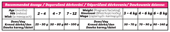 Kompletna karma super premium bez zbóż dla kociąt oraz kotek ciężarnych i karmiących , która zapewnia wysoką zawartość wysokiej jakości białka zwierzęcego i energii niezbędnych do zdrowego wzrostu, właściwego rozwoju i zwiększonych potrzeb żywieniowych w wymagających okresach życia.