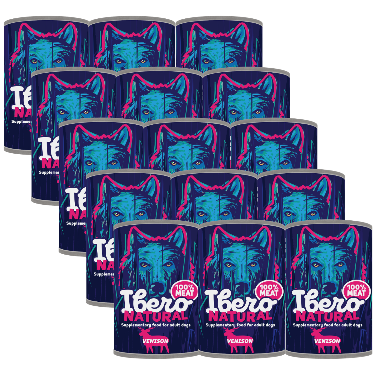 Karma uzupełniająca dla psów wszystkich ras i w każdym wieku, z dziczyzną . Podobnie jak wilk, pies potrzebuje wysokiej jakości mięsa i podrobów, aby zaspokoić większość swoich potrzeb żywieniowych. Karma w puszkach Ibero NATURAL zawiera 100% mięsa i podrobów, które są bogate w witaminy, minerały i ważne aminokwasy. Mięso jest przetwarzane, a puszki napełniane ręcznie. Karma nie zawiera pszenicy, kukurydzy, soi, sztucznych barwników, konserwantów ani aromatów. Stanowi doskonałe uzupełnienie suchej karmy Ibero NATURAL, ale może być również stosowana jako samodzielny pokarm.