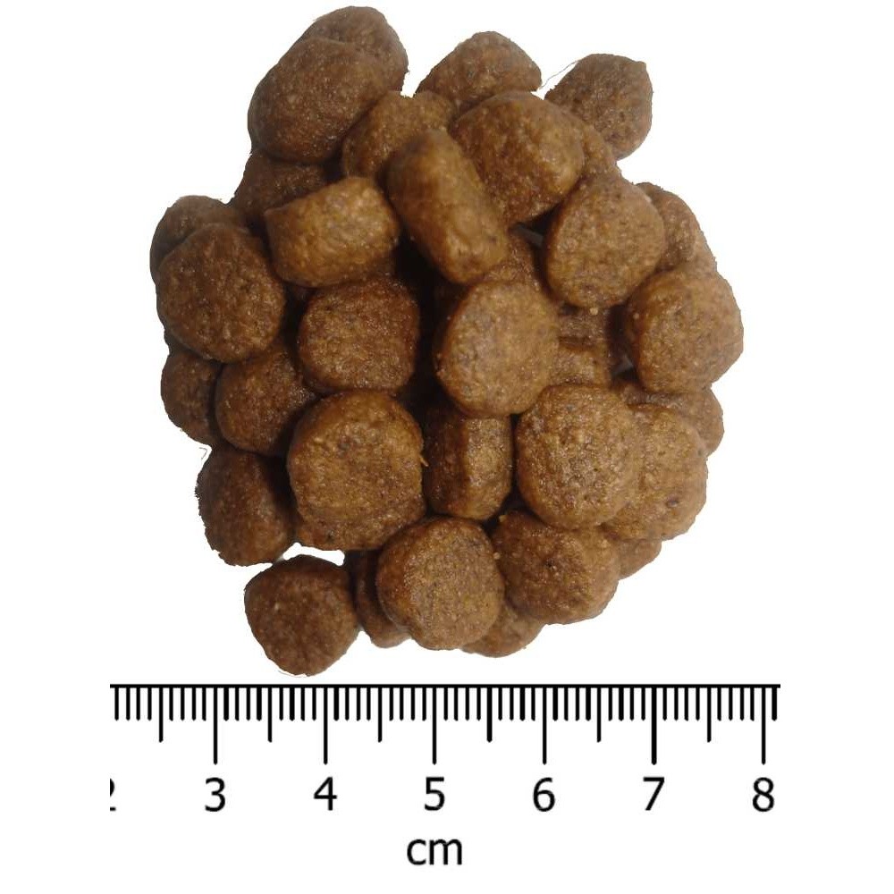 Składniki analityczne: Białko surowe 28%, tłuszcz surowy 17%, EPA + DHA 400 mg/kg, kwasy tłuszczowe omega-3 0,45%, kwasy tłuszczowe omega-6 3,35%, włókno surowe 3%, popiół surowy 7,50%, wapń 1,30%, fosfor 1,10%.