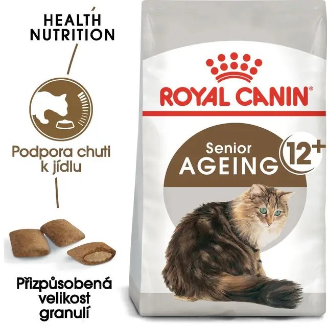 Starsze koty mają inne potrzeby żywieniowe niż ich młodsze odpowiedniki, dlatego ważne jest, aby dostosować dietę kota do jego wieku, aby zapewnić zaspokojenie i utrzymanie tych potrzeb. Karma ROYAL CANIN® Senior Aging 12+ jest odpowiednia dla kotów powyżej 12 roku życia i została opracowana specjalnie z myślą o potrzebach żywieniowych starszych kotów, takich jak Twój. Ta karma zawiera niezwykle smaczne krokiety o podwójnej konsystencji (chrupiące na zewnątrz, miękkie w środku), które pomagają stymulować ogólny apetyt Twojego starszego kota. ROYAL CANIN® Senior Ageing 12+ zawiera kompleks przeciwutleniaczy, aby wspierać starsze koty w całym procesie starzenia. Dzięki umiarkowanej zawartości fosforu, karma ROYAL CANIN® Senior Aging 12+ wspomaga również prawidłową pracę nerek, co jest bardzo korzystne dla starszych kotów. Aby dopasować się do indywidualnych preferencji każdego kota, karma ROYAL CANIN® Senior Ageing 12+ jest również dostępna jako karma mokra w pysznym sosie lub soczystej galaretce. Jeśli rozważasz karmienie mieszane, postępuj zgodnie z naszymi wskazówkami dotyczącymi karmienia, aby mieć pewność, że Twój kot otrzyma odpowiednią ilość karmy mokrej i suchej, co zapewni mu optymalne korzyści.